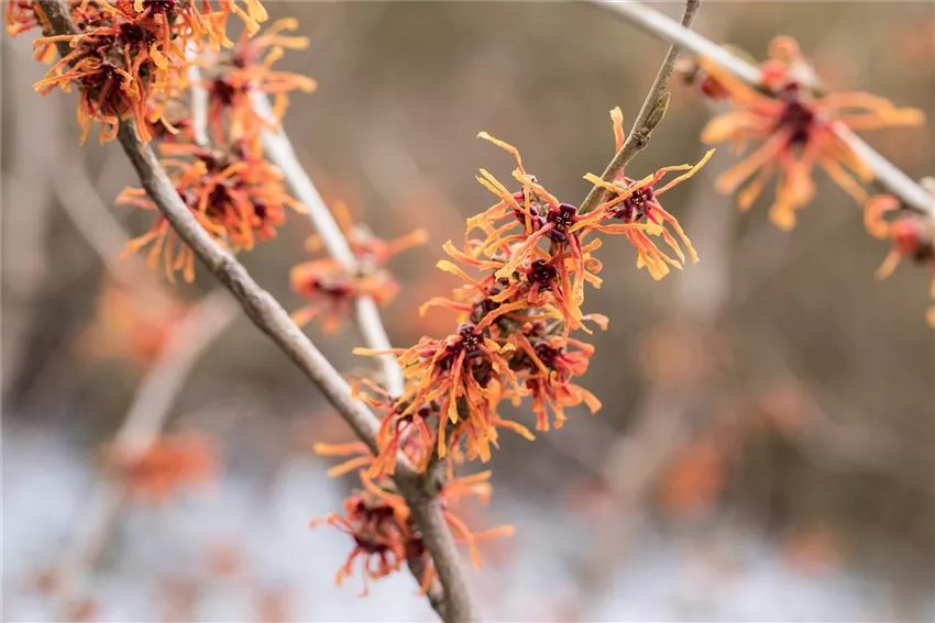 Warum aber sollten sich Pflanzen die Mühe machen und im Winter blühen, wenn es noch kalt draußen ist? Im Sommer ist es schließlich wärmer, sonniger und generell fröhlicher. Aber genau da liegt der Gedanke hinter der Taktik der frühblühenden Gehölze: im Sommer ist die Konkurrenz zu groß. Im Sommer explodiert die Natur förmlich und an jeder Ecke sind Blüten zu finden, die Biene, Hummel und Co. anlocken. Da ist es schwierig, auch ein Stück vom Kuchen abzubekommen. Deshalb blühen Winter-Schneeball und Co. dann, wenn die Konkurrenz besonders gering ist. Aber obwohl die Blüten nicht so auffällig sind wie die vielen bunten Blumen im Sommerbeet: viele frühblühende Gehölze fallen mit sehr extravaganten Blüten auf. Die Zaubernuss ist das beste Beispiel. Die fransigen Blüten zeigen sich ab Januar in leuchtendem Gelb, Orange oder Rot und duften besonders verführerisch.